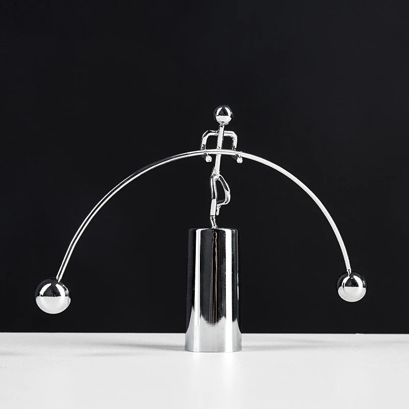 A masterpiece of modern art and refined craftsmanship. This striking ornament captures the essence of poise and resilience, featuring a sleek chrome-finished figure gracefully balanced on a polished podium. The balancer, holding a long, elegantly curved bar with two precisely placed ball weights, embodies the delicate interplay of strength and harmony.